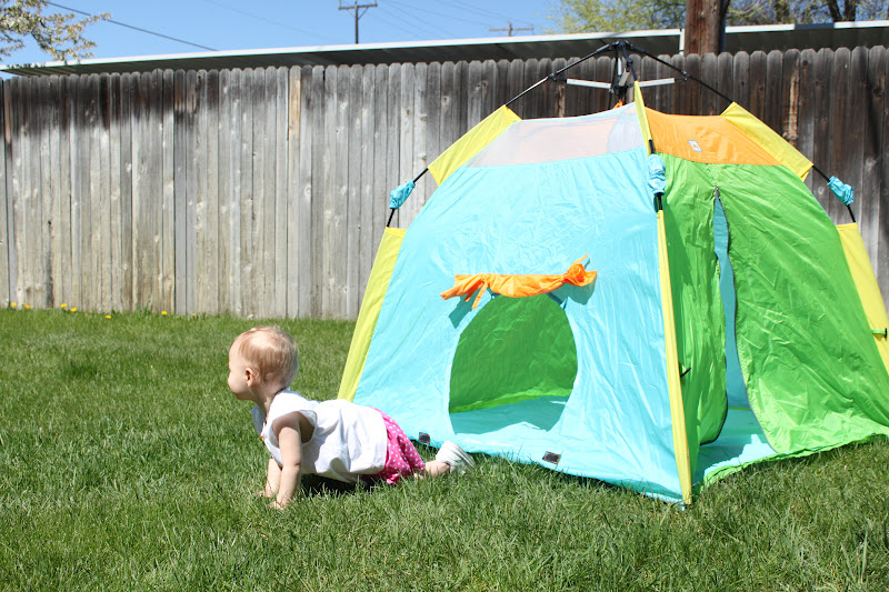 Grandma and Grandpa Bohman decided to come and visit it us this weekend. We have been so lucky to have such wonderful weather this weekend. It has been over 80 everyday! On Saturday we decided to take a walk to Cassia Park and play on the jungle gym. Katelyn, like always, loved going down the slide.